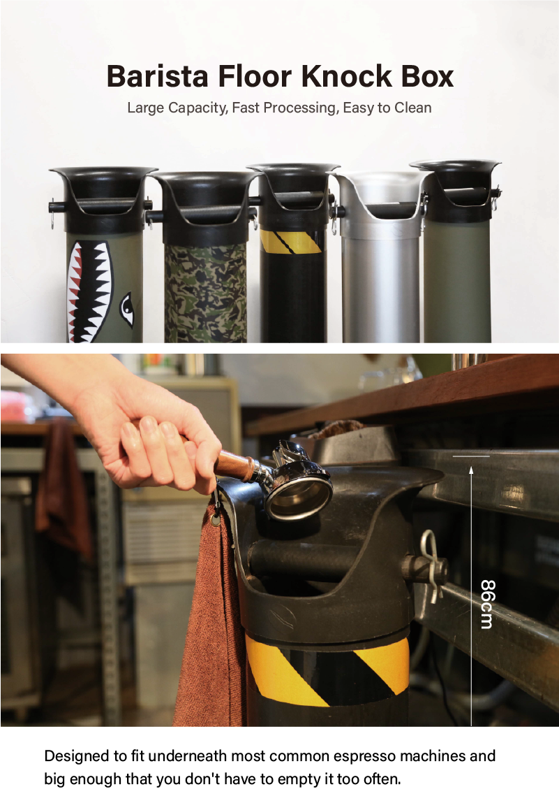 The Knock box is an essential accessory for barista to quickly dispose the residue of each espresso shots. 86cm of the height was designed to fit underneath most of the espresso machine. It’s touch and durable, so suitable for both home and commercial use.