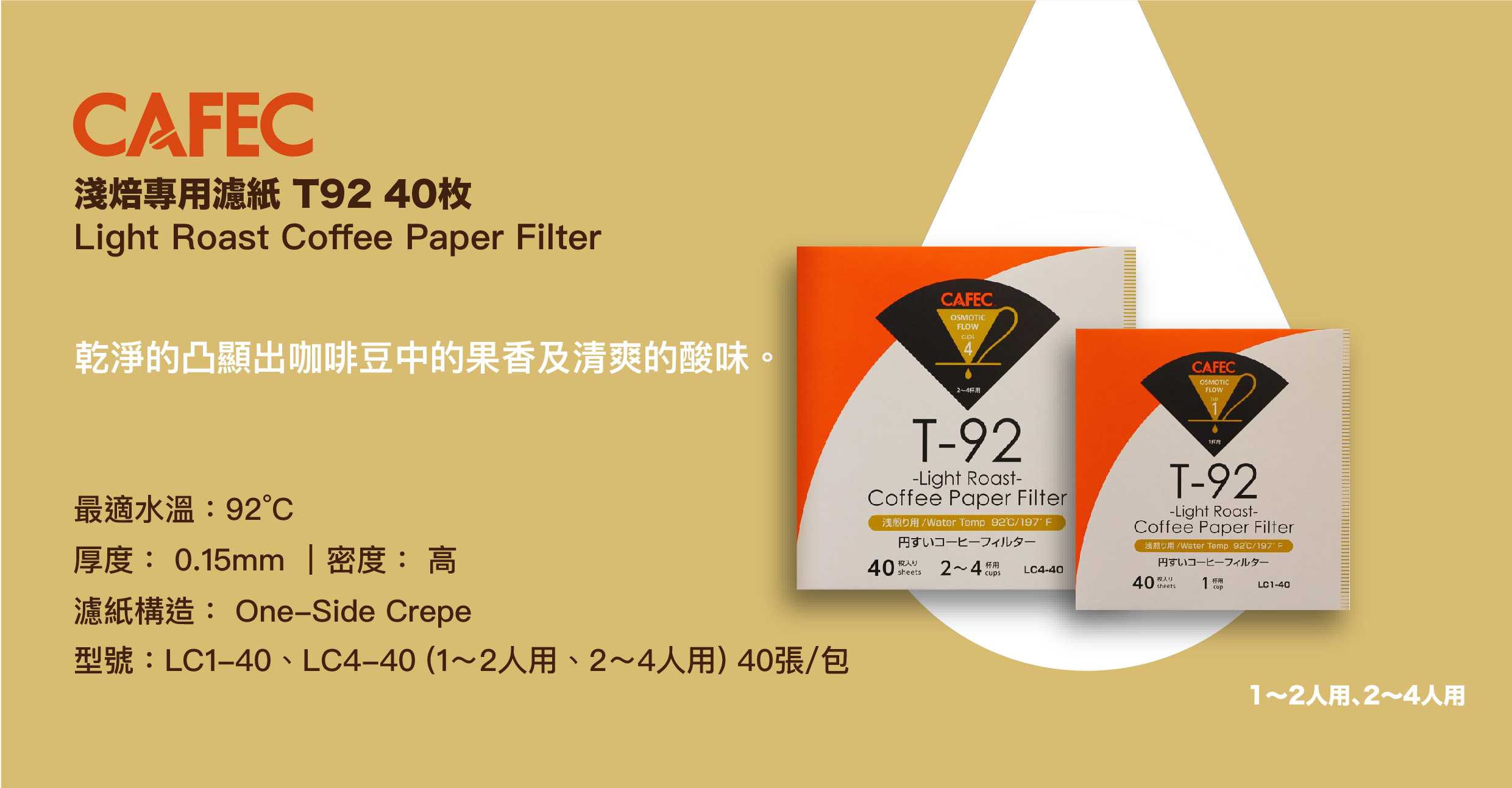 CAFEC 淺焙專用濾紙 T92 40入裝