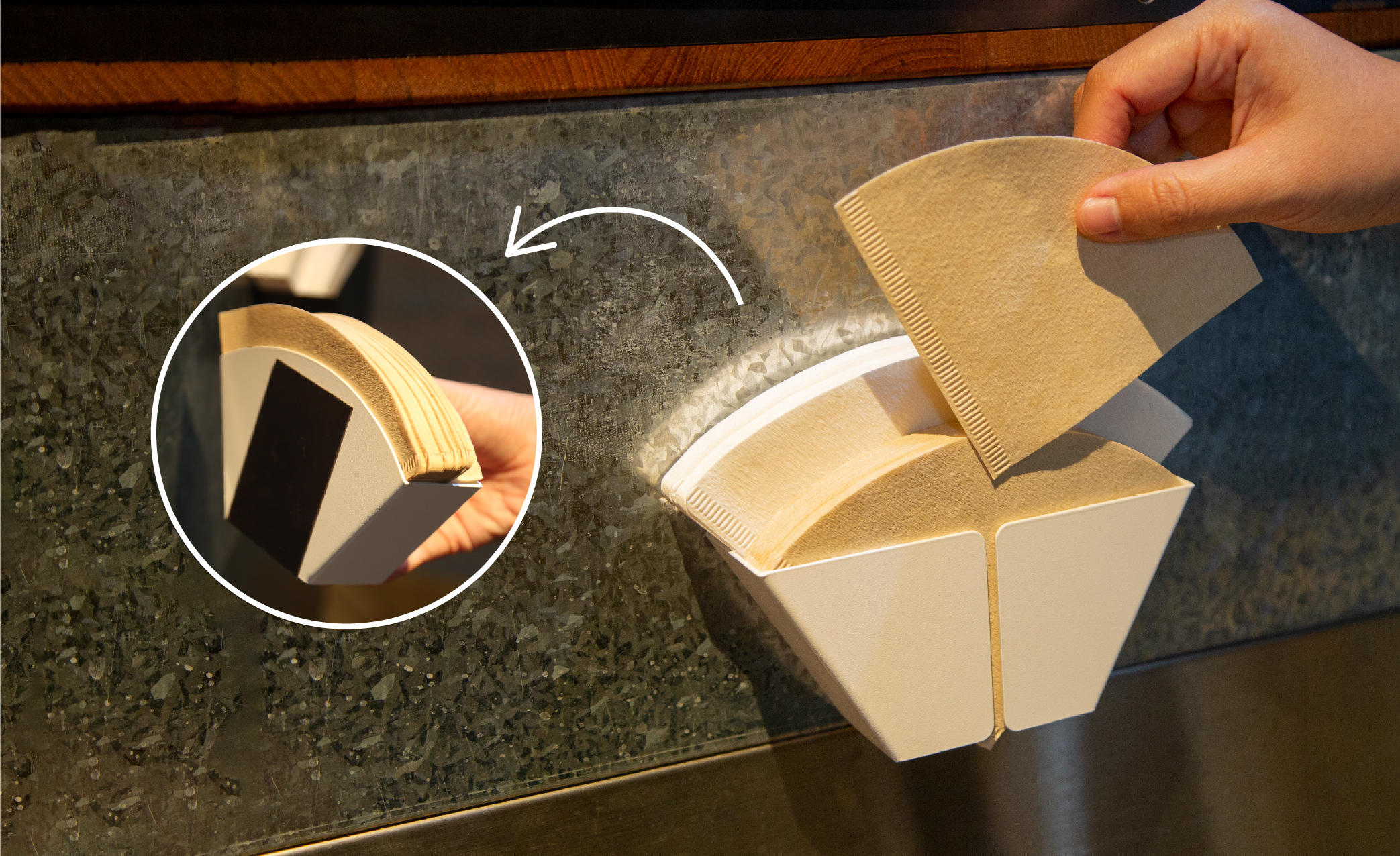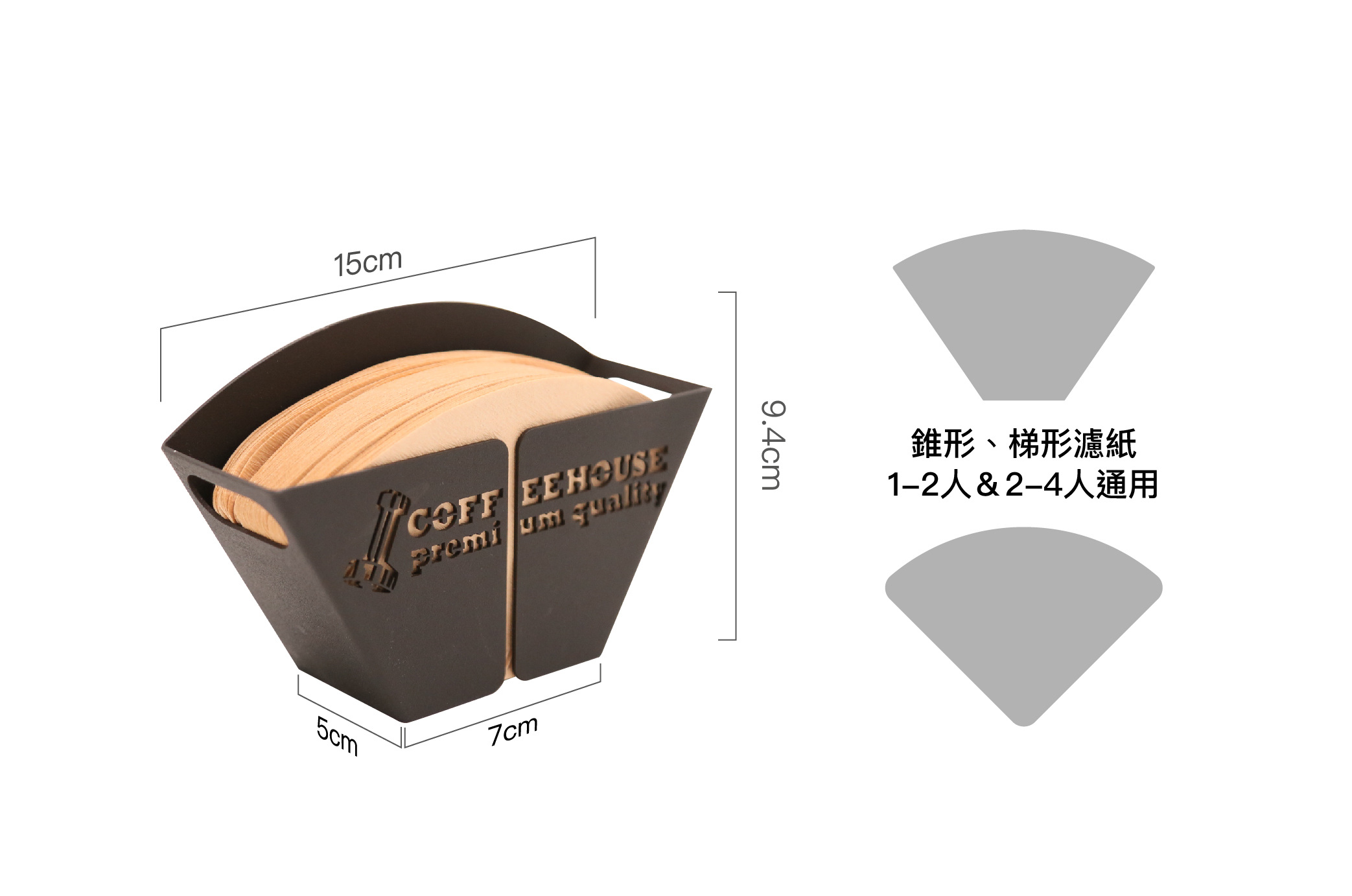 磁吸式的濾紙架,方便不佔空間。錐形梯形不限大小皆可放置約100張。抽取方便,維持檯面整潔。