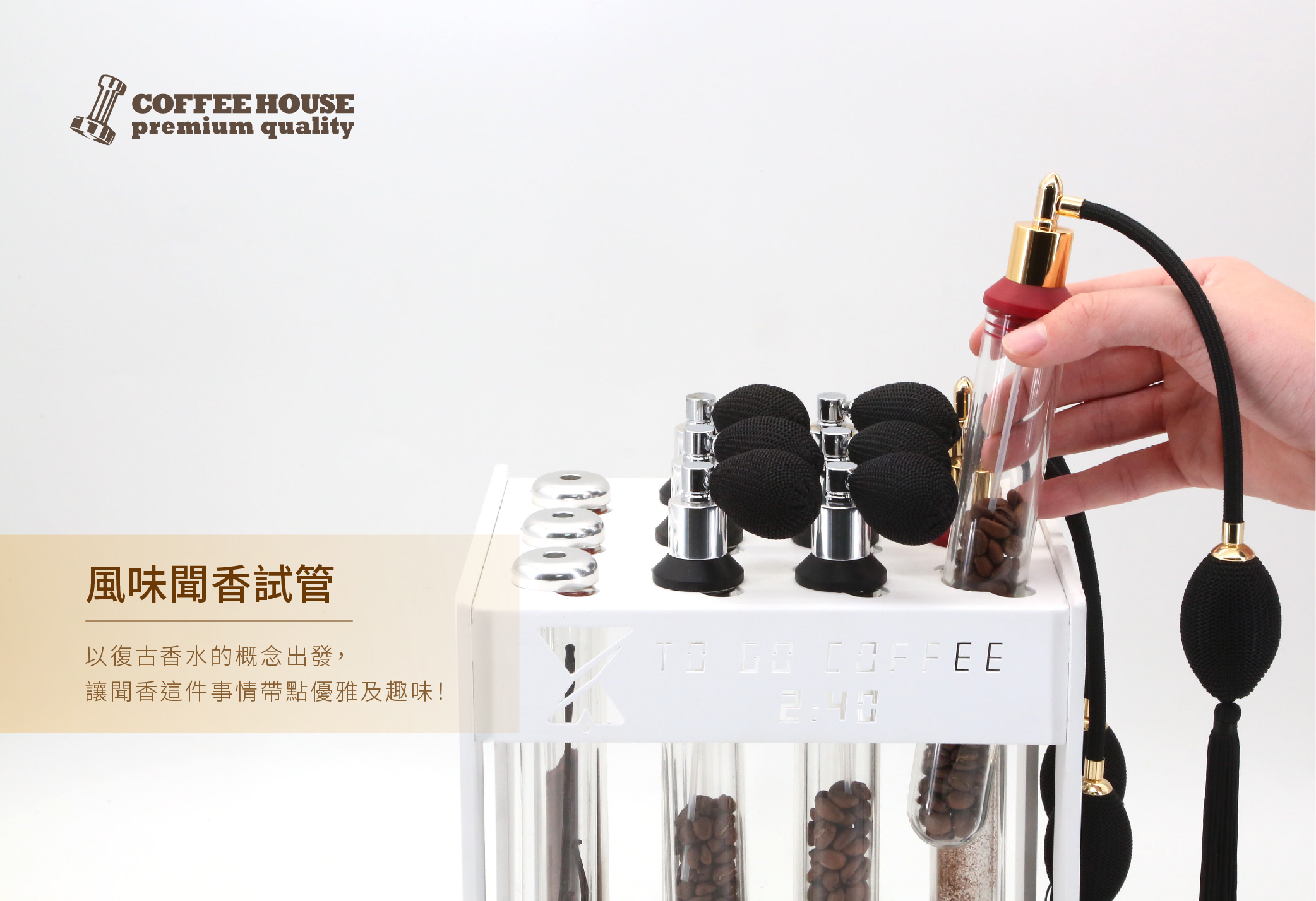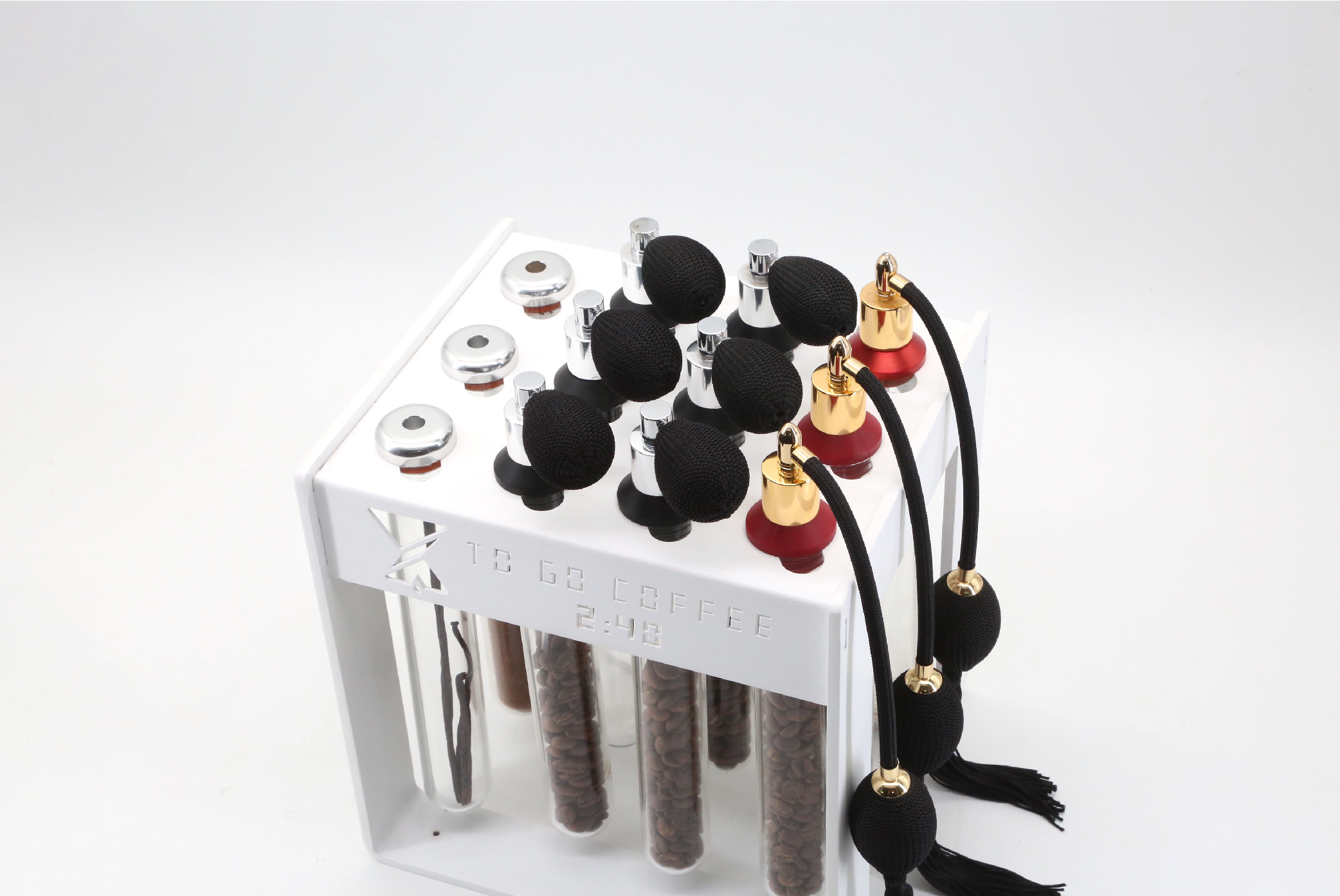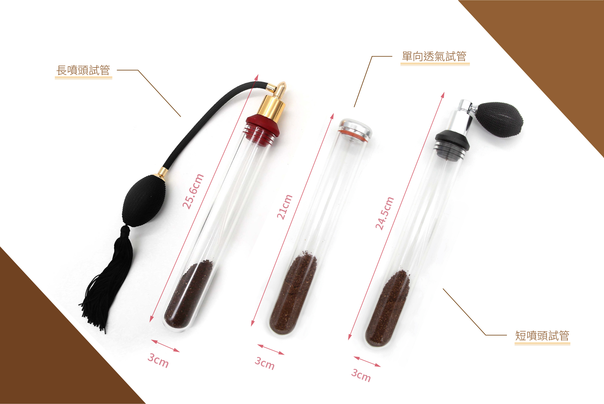 法式復古香水造型的聞香試管,當您與客人介紹咖啡豆時,讓聞香這件事帶點優雅及趣味!