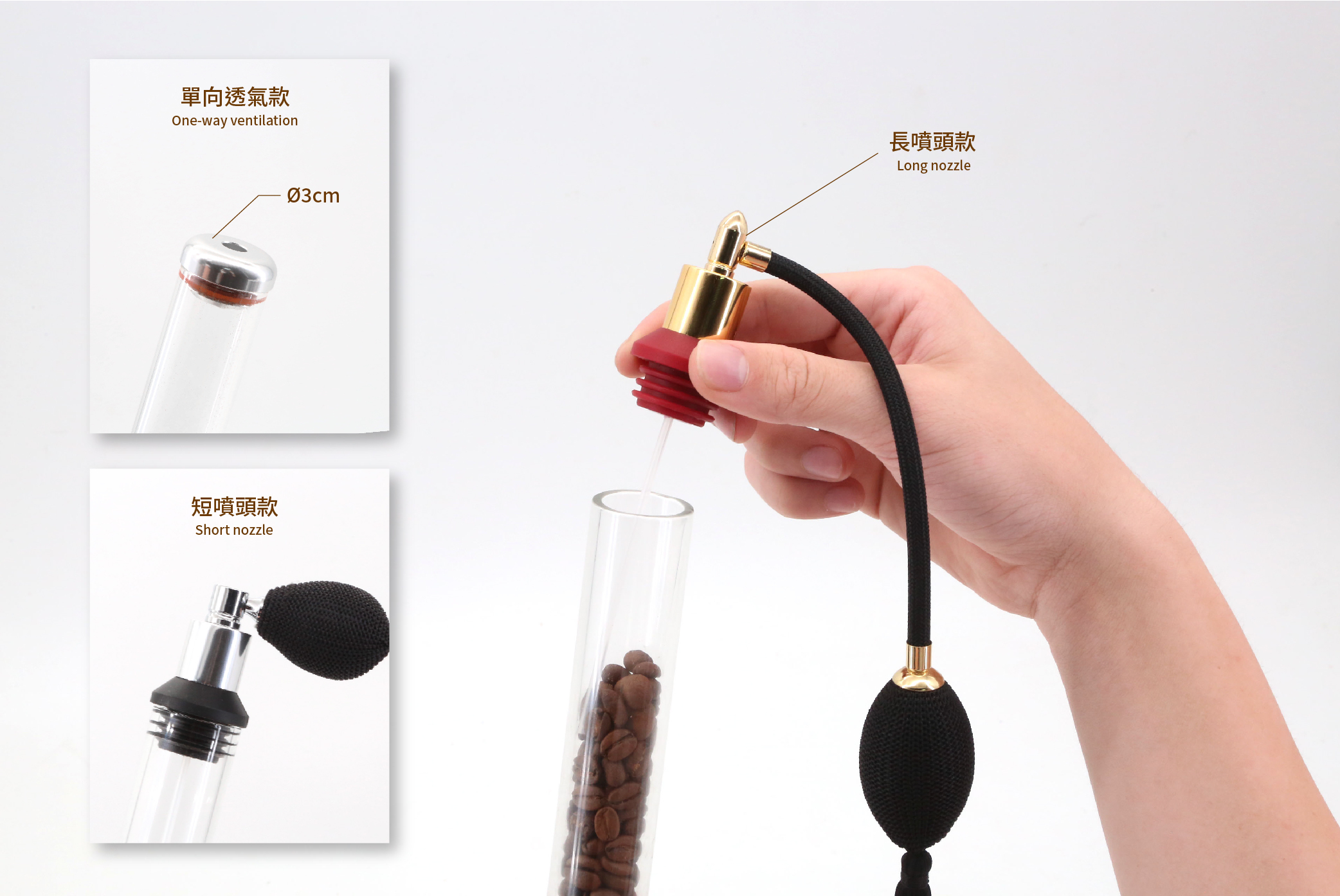 有『單向透氣款』、『短噴頭款』和『長噴頭款』,可依據不同咖啡豆儲存條件做選擇!