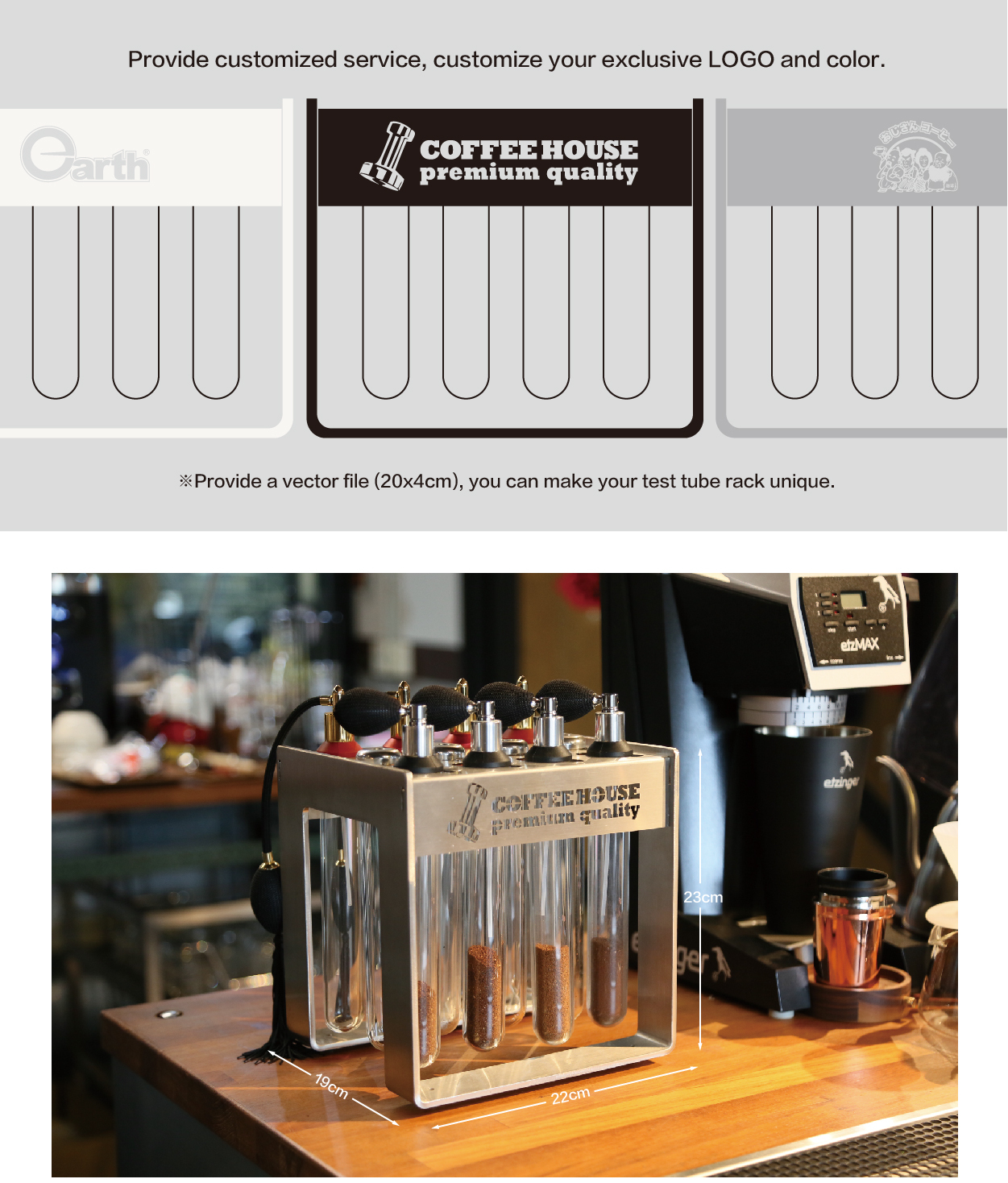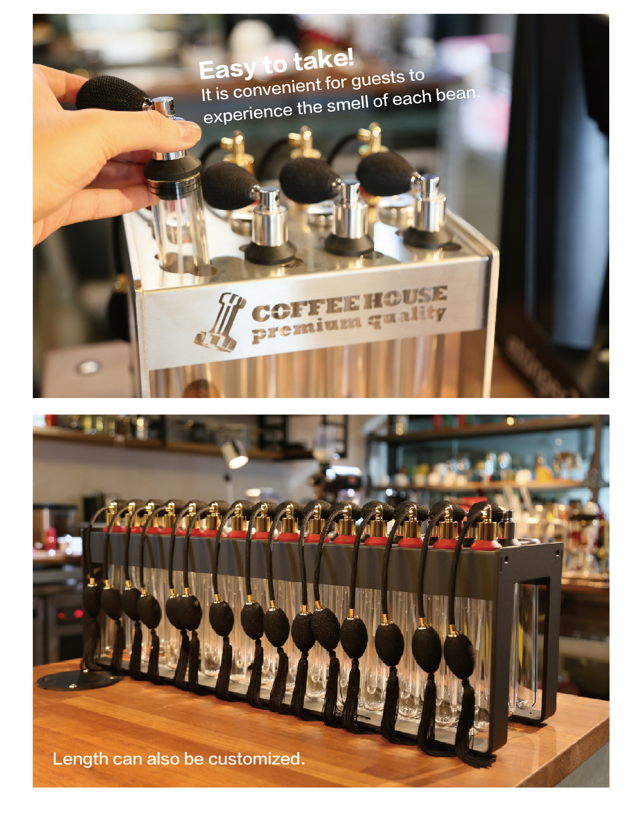 The stainless steel material has a good feel and texture. It can be put into 12 smelling test tubes, which are easy to take and allow guests to experience the aroma of coffee beans!