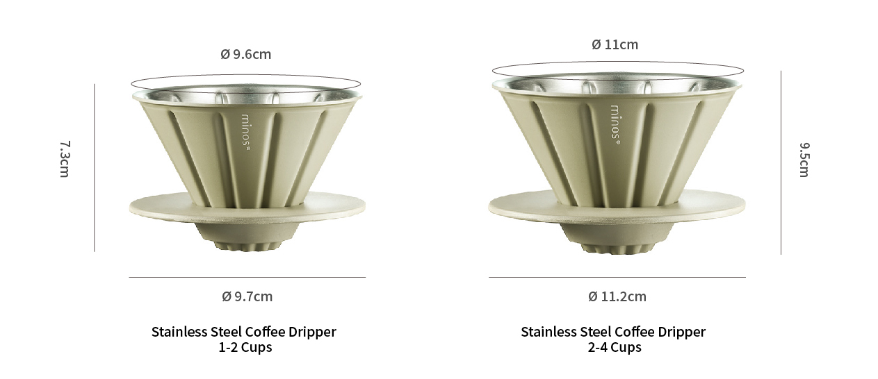Minos Outdoor Collection – Stainless Steel Dripper. It is designed for 2-4 cups and features 12 V-shaped ribs that not only strengthen the structure but also maintain stable airflow for a consistent extraction. Its convenience and portability make it the perfect companion for outdoor activities.