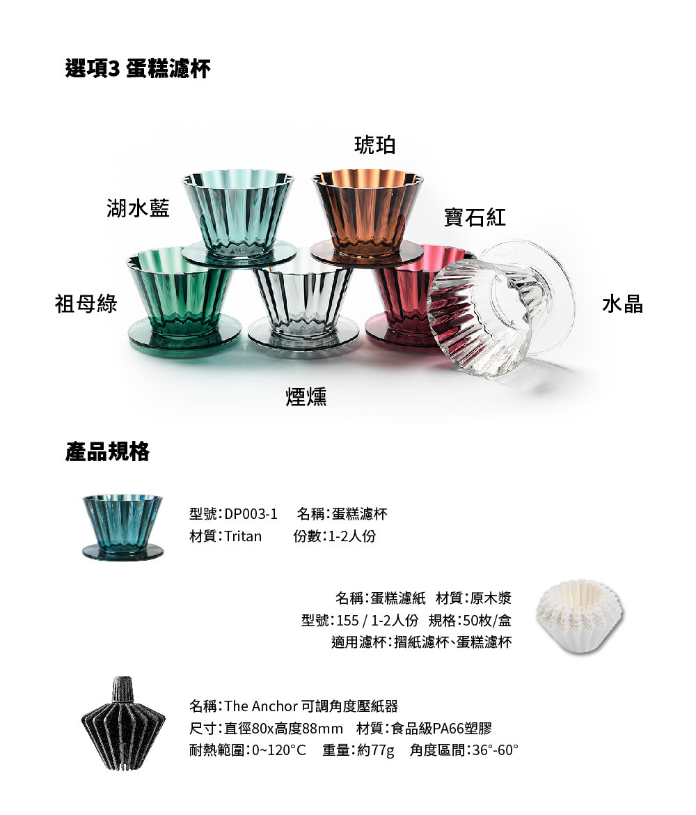 Minos蛋糕濾杯三件組結合實用與美觀,適合咖啡新手與愛好者,提供穩定的沖煮體驗與出色的風味表現。