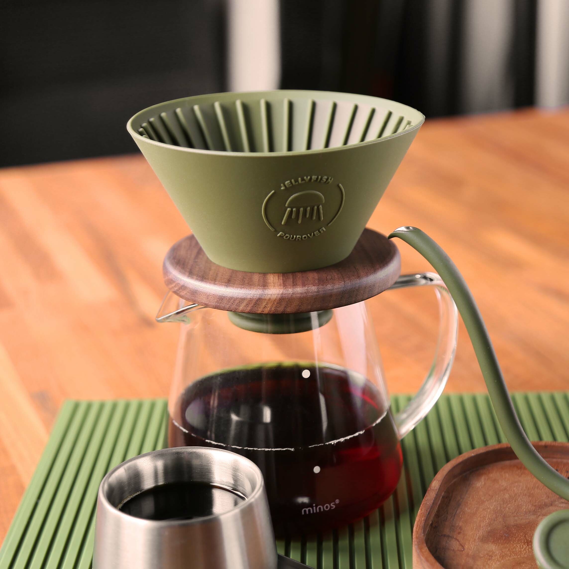 minos 露營系列新品,不銹鋼杯身搭配防燙止滑矽膠套,有效隔絕熱傳導不燙手,掛耳包簡單沖泡超適合,上寬下窄設計,方便使用完收納堆疊成列,絕對是你露營外出的必備咖啡器具之一。