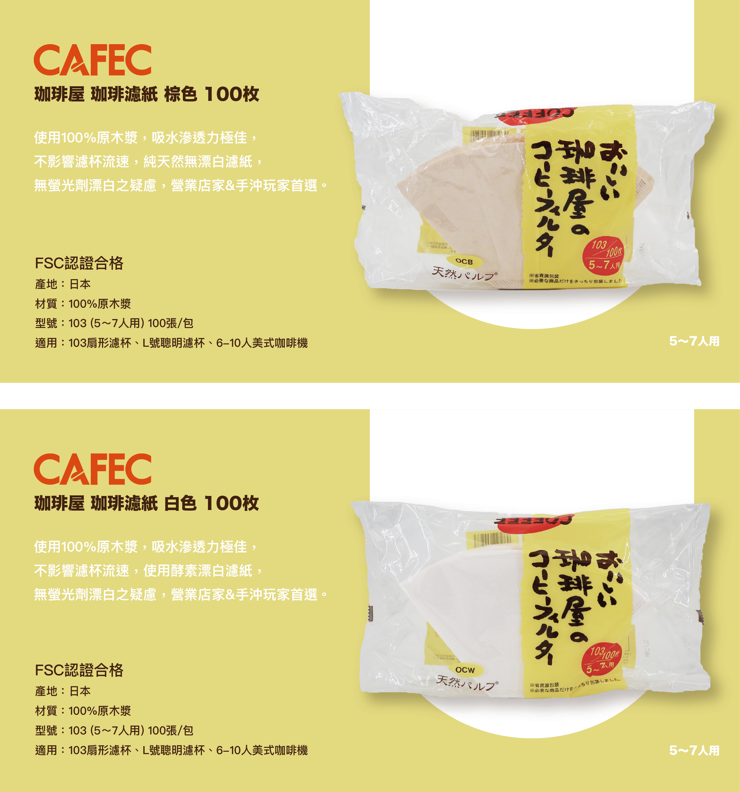 5-7人份,103梯形濾紙。適合於103梯形濾杯以及L號聰明濾杯