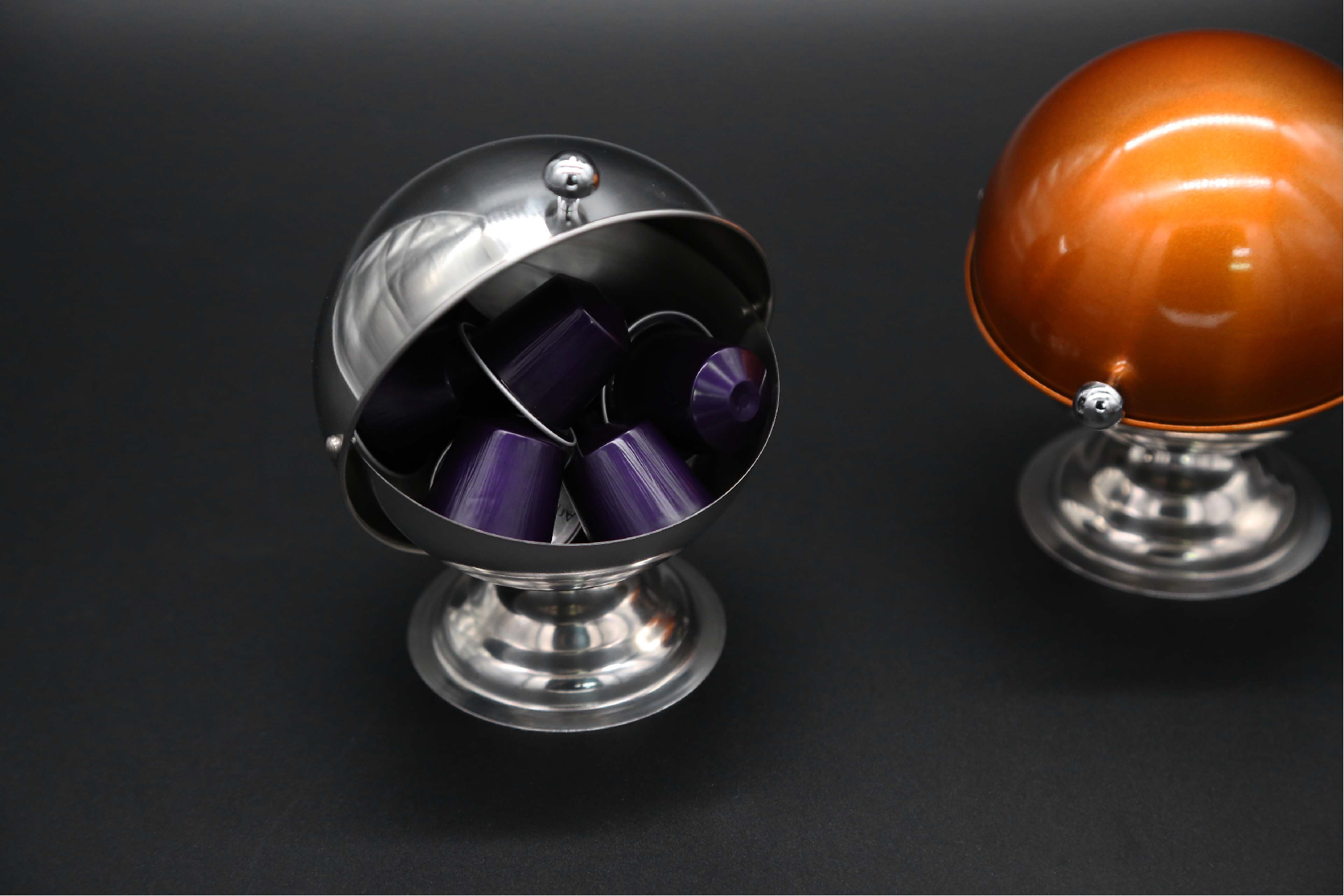 經典的掀蓋式設計搭配圓球造型,方便實用即開即拿,可存放咖啡膠囊、奶精球、鹽、方糖、調味料等!
