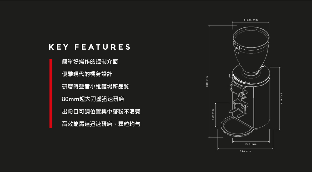Mahlkönig E80 SUPREME 高效的磨豆速度,可以輕鬆處理每日大量產能需求。特殊專門的刀盤設計 和鋸齒刀模超越頂端要求,能夠將咖啡味完美萃取,帶來絕佳口感。